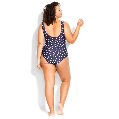 Be spotted this summer in the navy spot Twist Print 1 Piece! A fabulous choice for any sun lover, this playful swimsuit features an inbuilt shelf bra, a full coverage brief and a feature twist detail to the bust.Avenue is a leading plus size brand specializing in the perfect fit for sizes 12 – 32