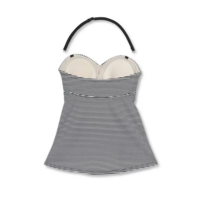 Bring a classically chic look to your swim outfits with this Bandeau Twist-Front Maternity Tankini Top from Isabel Maternity by Ingrid & Isabel™. This bandeau tankini top is crafted from stretchy fabric with soft lining for a comfy fit, along with sewn-in cups to keep your bust fully covered and supported. A cool bandeau cut adds style to your look, while the twist-front design adds a charming finish to your look. Ruched sides accommodate your growing baby bump for a flattering fit that’s perfectly complemented by a black-and-white stripes print, making this a swimwear piece one you’ll love to show off.