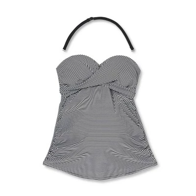 - Twist-front bandeau tankini top in black-and-white stripes print