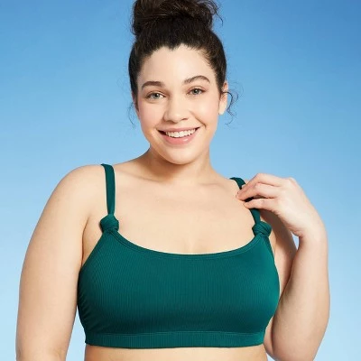 Rock a simple yet sweet swim look when you pair this Ribbed Knot Strap Bralette Bikini Top from Xhilaration™ with a variety of swim bottoms in your collection. This bralette-style bikini top is designed in a lovely teal green color and crafted from a ribbed stretch fabric that is flattering as well as comfortable. It’s designed with a knot on each strap to create unique style, while the sewn-in cups give you the coverage you need. The adjustable shoulder straps and double hook closure in back help you find your perfect fit.