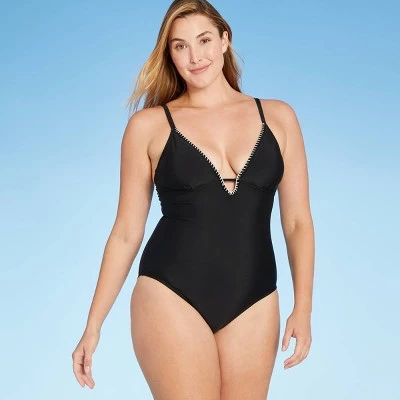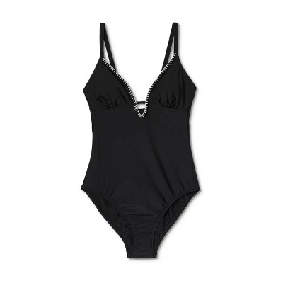 A one-piece doesn’t have to be totally modest, and the Blanket Stitch High-Leg Medium Coverage One-Piece Swimsuit from Kona Sol™ proves it. A deep V-neckline puts a sultry spin on a classic one-piece silhouette, and a high-leg cut gives your legs an elongated look you’ll love to show off. The deep V is balanced out by sewn-in cups for some extra coverage. A solid color gives the swimsuit a chic look, with white blanket stitching along the neckline giving it a touch of eye-catching detail. The one-piece style and striking look make it easy to take this swimsuit from the water to the rest of the day’s outings just by slipping on a pair of palazzo pants.
