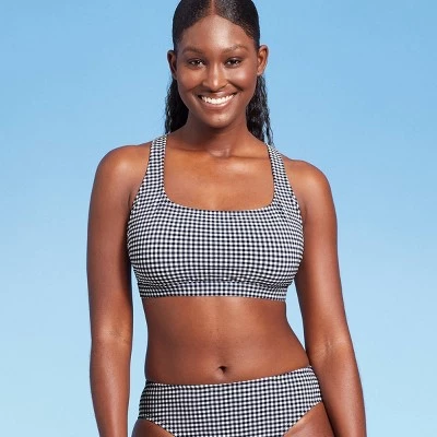 - Gingham textured bralette bikini top adds on-trend style to your swimwear