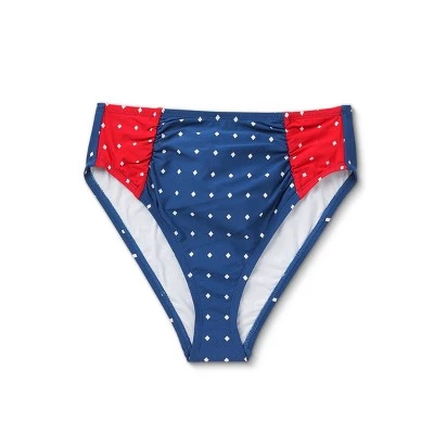 Red, White and Blue gets a new look in this colorblocked Diamond Printed Bottom from Sea Angel. Marina Blue is a focal point with a pop of Cherry Pie Red and adorned with white diamonds for a modern take on Americana. Side-shirred panels make for a universally flattering look. Pair it with the matching color-blocked top or with your favorite solid bikini top. Soft fabric with spandex makes this a comfortable and easy piece to wear.