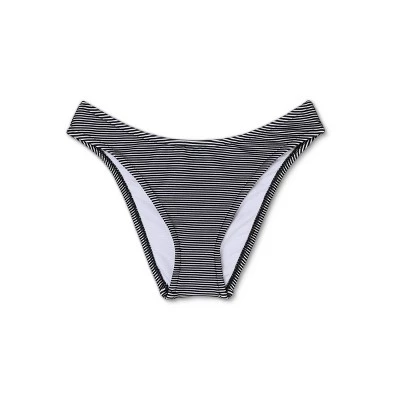 Style a stunner of a swim look when you add this Textured Cheeky Bikini Bottom from Shade & Shore™ to your swimwear collection. Featuring a low-rise fit with a cheeky cut back to show off some extra skin, this pull-on bikini bottom is made with plenty of stretch for easy movement, and features an allover textured fabric for a cool look and feel. The simple black and white stripe pattern makes a perfect pick for coordinating with a matching top, or for pairing with a variety of bikini tops in different colors for a unique mix-and-match look.