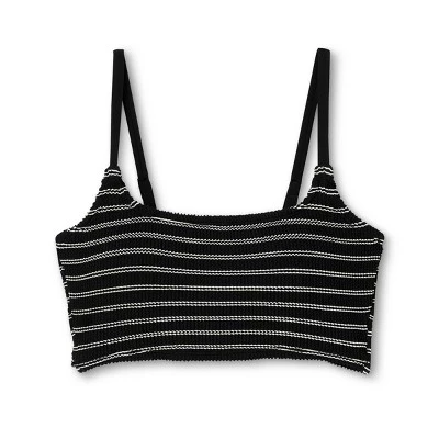 It’s easy to style a great go-to swim look when you pair this Textured Pucker Straight-Neck Bikini Top from Kona Sol™ with a variety of swim bottoms in your wardrobe. Featuring an allover puckered texture for added interest and style, this longline bikini top is designed with sewn-in cups for comfortable coverage that moves with you as well as a flattering shape. The square neckline offers a simple yet stylish silhouette, while adjustable shoulder straps make it easy to find the right fit for you. Skinny stripes on the black background along with the unique textured fabric add a retro vibe to the look, making it a perfect pick for pairing with high-waisted swim bottoms.