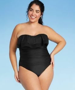 Best Pirce ✨ Women’s Crochet Flounce High Coverage One Piece Swimsuit – Kona Sol™ Black ✔️