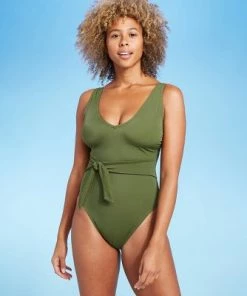Best deal 🤩 Women’s Grommet Scallop High Coverage One Piece Swimsuit – Kona Sol™ Dark Green ❤️