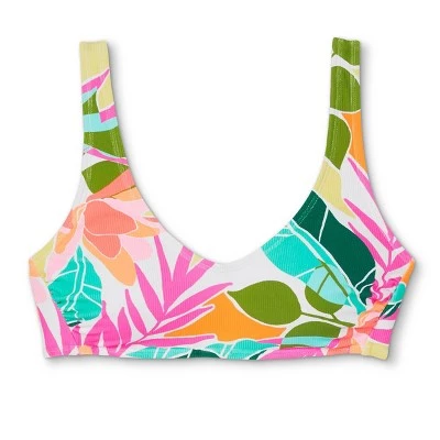 Add a little extra fun to your swimwear with the pretty colors of this Ribbed Bralette Bikini Top from Xhilaration™. In a vibrant tropical pattern, this rib-knit bikini top lends both color and texture, while the opaque fabric lets you move in and out of water with confidence. This bikini top comes in a bralette cut to provide you with enough coverage to confidently rock your look, and removable cups and adjustable straps let you customize your coverage level while helping you get the right fit every time. Mix things up with solid-colored bottoms or pair with a matching swim bottom for a chic beach look you’ll love wearing.