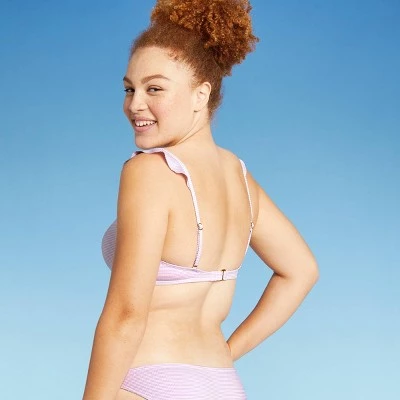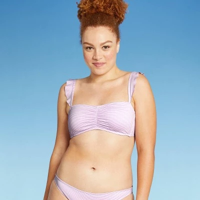 The Textured Stripe Ruffle Shoulder Bralette Bikini Top from Xhilaration⢠is a vacay must-have. This cute bikini top comes in a classic bandeau style and features a textured stripe pattern, along with a cinched-front accent for an on-trend look. The fully adjustable tie-back fastening keeps the swim top in place, while ruffled shoulder straps with golden buckles provide a perfect fit every time. The textured stripe bikini top is made from a soft and stretchy fabric that offers you flexible movement whether you are swimming, lounging along the shore, and more. Wear it with matching bottoms and your fave beach accessories to finish the look.