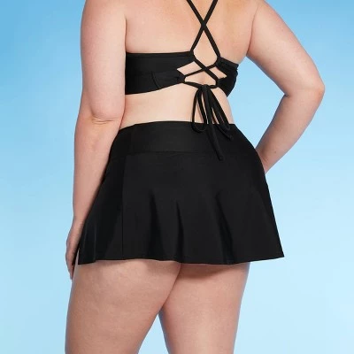 Add fashion-forward style to your swimwear with this Swim Skirtini from Kona Sol™. Modest coverage and partial cut-outs on the sides give this swimwear piece a look that’s both chic and sophisticated. A nylon and spandex blend provides a figure-hugging design you’ll love with a stretchy feel for effortless movement during beach volleyball or swimming. Its black color pairs beautifully with the matching top for a flatteringly feminine look, but is easy to coordinate with any bikini top.