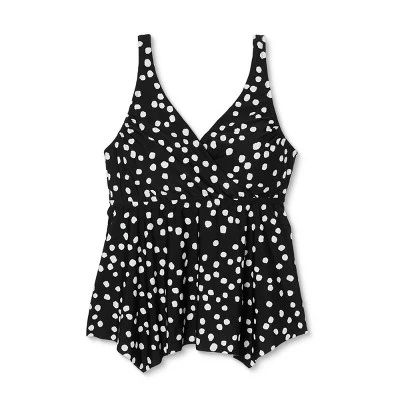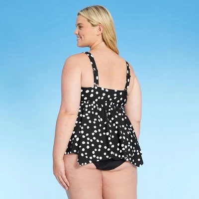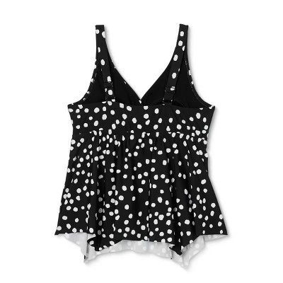 Outlet 🎁 Women’s Plus Size V-Neck Sharkbite Tankini Top – Kona Sol™ Dot Print ⌛