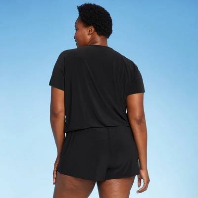 Take your swim looks up a notch with this Romper Cover-Up from Aqua Green®. This cover-up showcases an open crossover front design, for easier on/off convenience, as well as sleeves for added sun protection. Perfect to throw on over your tankini, one-piece swimsuit, and more, this romper cover up offers a stylish look that gives you a little extra coverage on your way to or from the pool or beach. And with the UPF 50+ rating, this cover-up also offers some extra protection for your skin from harmful sun rays.