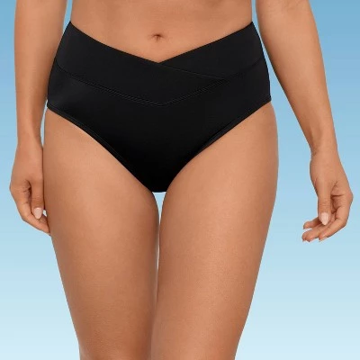 Retro meets modern in this Slimming Control High Waist V Front Bikini Bottom from Beach Betty. The high waist keeps everything sleek, while a V shaped waistband dips in the front to flatter your figure. Miracle Brands exclusive fabric smooths and shapes your silhouette, keeping you confidently comfortable all day. Pair with your favorite Beach Betty bikini top for your new favorite look!