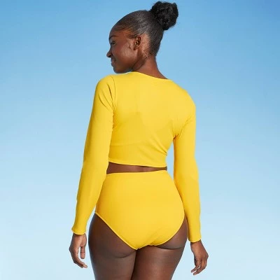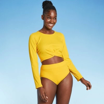 This twist-front long-sleeve cropped rash guard offers textured, colorful style, and the crop top length gives you just enough coverage. UPF 50+ rated material helps block the sun’s harsh UV rays, and the opaque fabric gives you coverage you can count on for confidence in and out of water. Plus, the pullover style and plain back design offers a comfortable and secure fit.