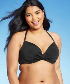 Cheapest 💯 Women’s Longline Twist Bikini Top – Kona Sol™ Black 🤩