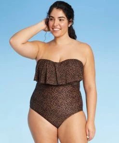 Deals 👍 Women’s Bandeau Flounce High Coverage One Piece Swimsuit – Kona Sol™ Multi Natural 👏