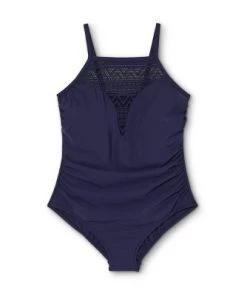 New ❤️ Women’s Plus Size Crochet High Neck One Piece Swimsuit – Aqua Green® Navy 🎁