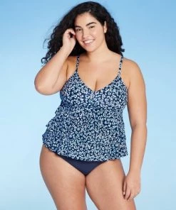 Discount ❤️ Women’s Faux Wrap Bikini Top – Kona Sol™ Mudstone Blue 🤩