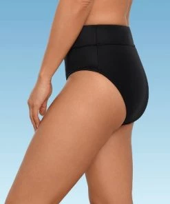 Outlet 🧨 Women’s High Waist Medium Coverage Bikini Bottom – Kona Sol™ Black 🎉