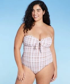 New 😀 Women’s Textured Pique Tie-Front High Coverage One Piece Swimsuit – Kona Sol™ Multi Naturals 🤩