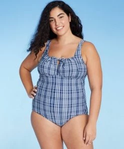 Flash Sale 😍 Women’s Tunnel High Coverage One Piece Swimsuit – Kona Sol™ Blue Check 👍