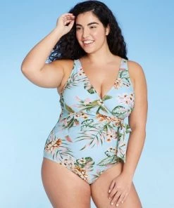 Wholesale ๐ Women’s Wrap-Front High Coverage One Piece Swimsuit – Kona Solโข Tropical Print ๐