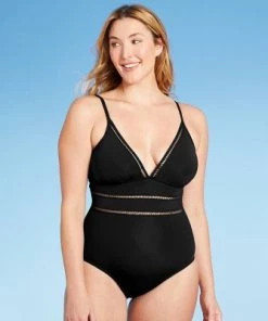 Cheapest 💯 Women’s Ladder Trim Medium Coverage One Piece Swimsuit – Kona Sol™ Black Multi 🧨