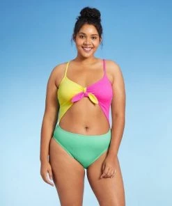 Budget ⭐ Juniors’ Ribbed Colorblock Tie-Front One Piece Swimsuit – Xhilaration™ Multi 🎁