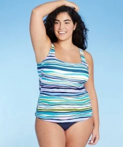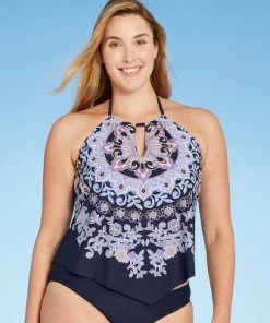 Cheapest ⌛ Women’s Double Flounce Front High Coverage One Piece Swimsuit – Kona Sol™ Multi 🎁