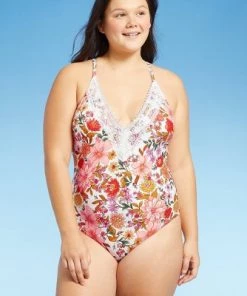 Deals โ Women’s Lace Trimmed One Piece Swimsuit – Sea Angel White ๐