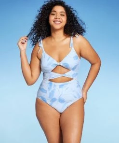 Deals ๐ Women’s Double Twist One Piece Swimsuit – Sea Angel Blue โ
