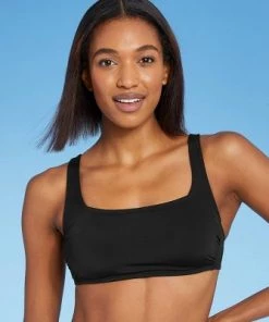 Flash Sale 🛒 Women’s Simple Square Neck Over the Shoulder Bikini Top – Kona Sol™ Black 🔥