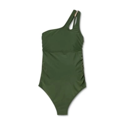 Relax under the sun in comfort and style in this Asymmetrical One-Shoulder One-Piece Maternity Swimsuit from Isabel Maternity by Ingrid & Isabel™. Crafted from a soft fabric with added spandex for easy movement, this printed one-piece swimsuit features adjustable double back straps for a snug, comfy fit. Plus, it’s designed with sewn-in cups to offer you confident coverage, while shirring at the sides helps accommodate your growing baby bump. Featuring a sleeveless design with a full torso and seat coverage in a solid green hue, you can pair it with a wide-brim sun hat and shades to rock your swimwear.