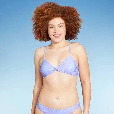 Add a “twist” to your beach-ready routine wearing this Twist-Front Bralette Bikini Top from Xhilaration™. In a light aqua blue color, this bralette bikini top features a beautiful pink butterfly print for a sweet look. The cool twisted front and cutout brings an extra dose of style, while crisscross straps and a back tie elevate the look. Made with soft fabric with added spandex for stretchy comfort both in and out of the water, this printed bikini top also allows easy mixing and matching with both printed and solid-color bikini bottoms.