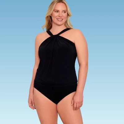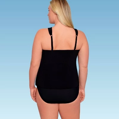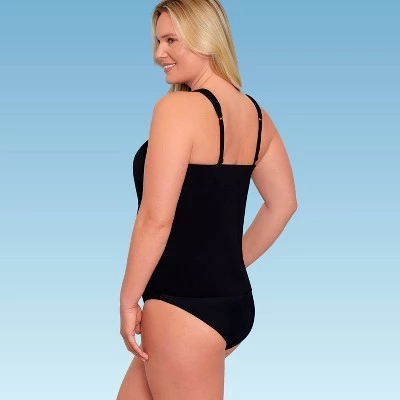 Casual elegance meets beach style in Dreamsuitβs Slimming Twist Front Tankini. A chic twist at the front gives you extra coverage where you want it most, while a high neckline draws the eye upward. Non-removable foam cups and adjustable straps give you shaping and support, while Miracle Brands’ favorite drapey microfiber skims your silhouette. Pair with your favorite Dreamsuit high waist bottoms and feel confidently comfortable all day!