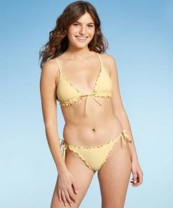 Coupon 🤩 Juniors’ Ruffle High Leg Scoop Bikini Bottom – Xhilaration™ Light Yellow 🌟