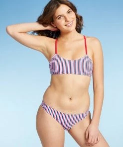 Discount 💯 Juniors’ Ribbed Cheeky Bikini Bottom – Xhilaration™ Red/White/Blue Stripe ✨
