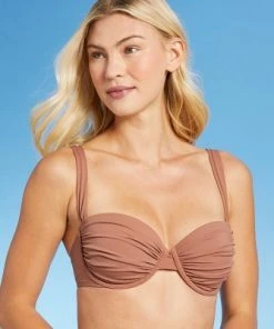 Flash Sale 🛒 Women’s Lightly Lined Shirred Cup Bikini Top – Shade & Shore™ Hazelnut Brown 🧨