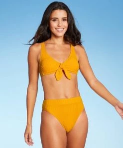 - Ribbed knot-front bralette bikini top with wide straps for comfortable wear in and out of the pool