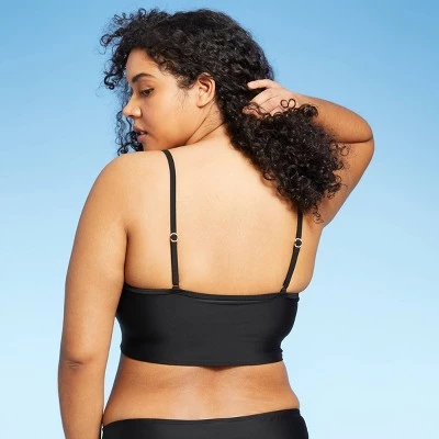 - Solid-hue longline bikini top with opaque lining is a swimwear staple
