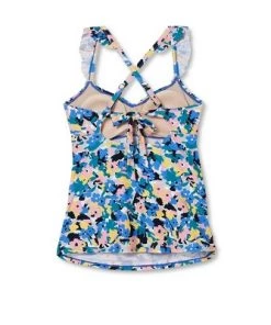 Enjoy any day by the water in the comfy-chic style of this Scoop Neck Ruffle Strap Maternity Tankini Top from Isabel Maternity by Ingrid & Isabel™. The tankini style provides full torso coverage, while a scoop neckline gives it a more interesting silhouette for added style. Sewn-in cups help to keep you covered at the bust, and adjustable straps that cross in back and ruched sides to accommodate your growing baby bump make it a piece you’ll feel great in with every wear. A ruffle along the straps adds a sweet touch of movement that’s perfectly complemented by the vibrant floral print, making it a swimwear piece you’ll love to show off.