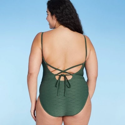 Get ready for your next beach day in stunning classic style with the Basket Weave Textured High Coverage One-Piece Swimsuit from Kona Sol™. This suit boasts a one-piece design that is both stylish and functional, as you can move around in comfort with the confidence of a stay-put fit. The square neckline and full-coverage bottoms offer the feel you need for even more comfort, while the low scoop back balances the silhouette for a playful look — complete with a strappy tie-back closure for pretty detail and adjustability. Sewn-in cups offer smooth shaping and support, and you’ll love the beautiful texture of a basket weave.