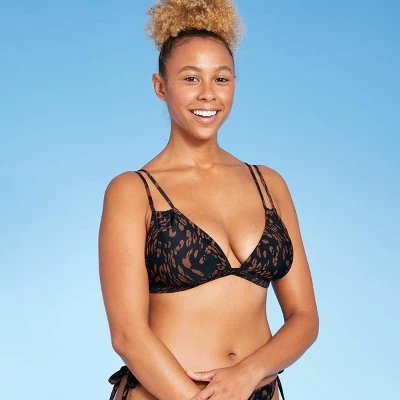 - Halter-style triangle bikini top in a fun animal print
