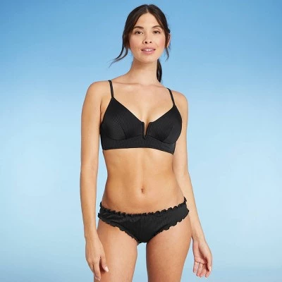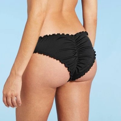 - Cheeky ribbed bikini bottoms with ruffle detailing will add feminine flair to your swimwear wardrobe
